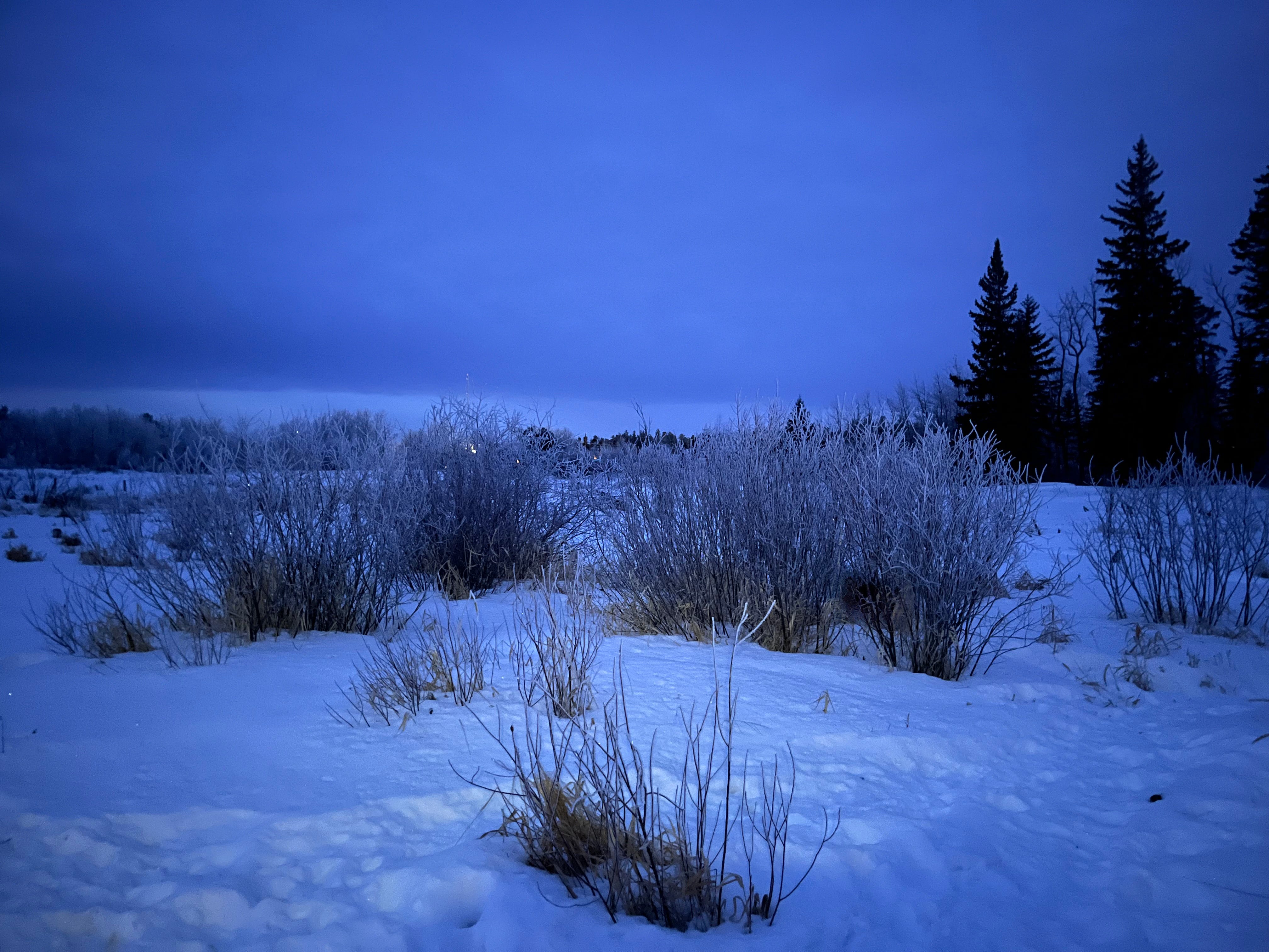 Assuming I am not lying; presuming I know truth when I see it, it’s still very dark out here. I fear. Yet…scattered light like ash from last year’s fires startles me with tiny clarity and non-essential (surely this is wasteful!) purity. Not enough to cut the night in two but maybe twenty million little embers; little bright eyes - tiny stars that hit the ground and shattered - old as God’s first whiskers shaved and swept to Earth as if they didn’t matter. I can’t see by their soft silvery fluorescence yet here they are cascading light into the night as if they make a difference. It’s ineffective from a certain logical perspective but, the crunchy disarray of elements arranged as careless firmaments upon the ground seems crowned with some external (to a human’s mind) significance. I carry on bemused and wondering - this night is cold and long but still it’s somehow slightly glimmering. ~ Lynn Lundell, ©2026