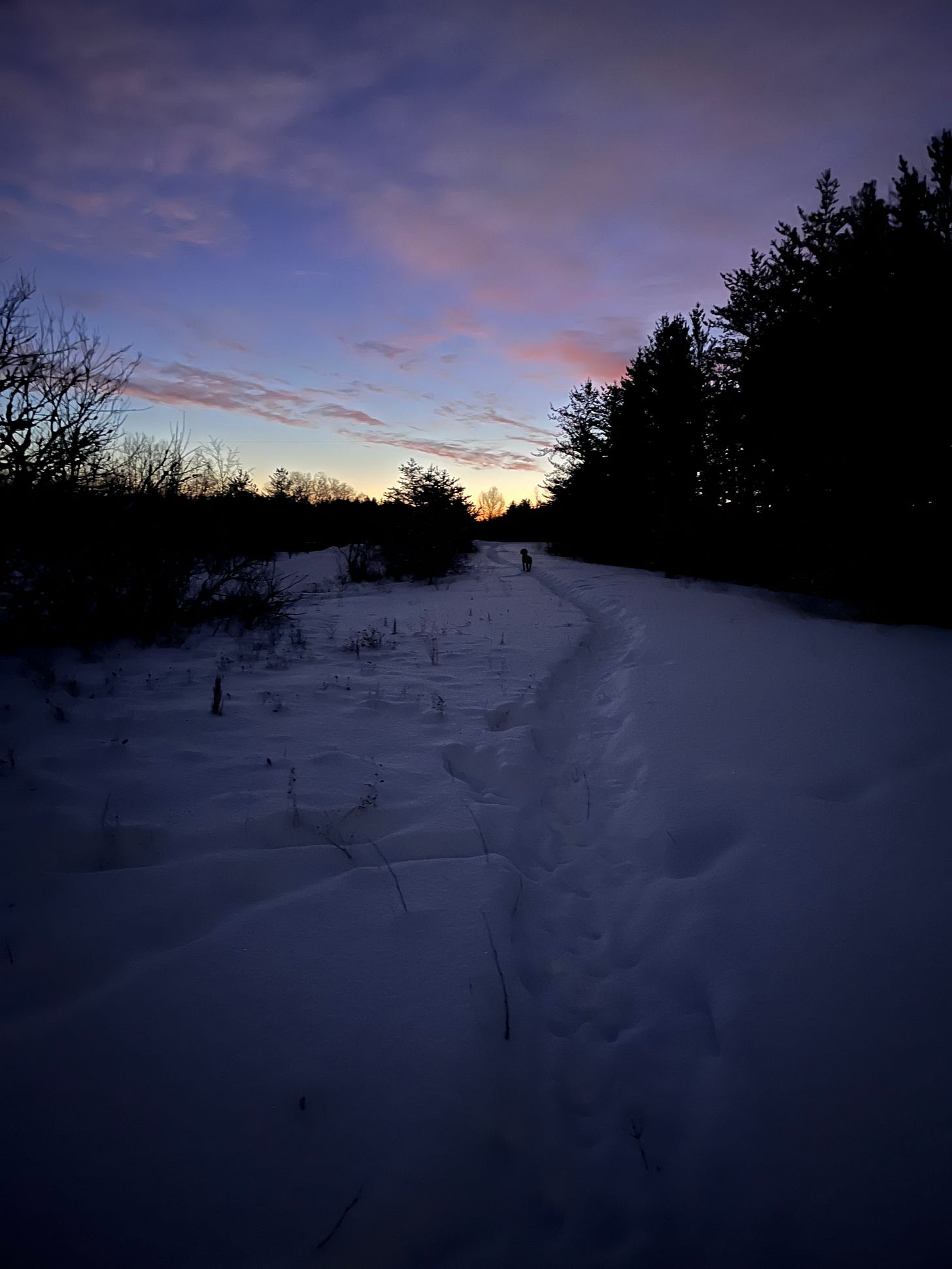 This one is about the difference between my story and yours. As defined (here in the middle of Canada in the middle of winter) by the small circular light thrown by my toque. As I try not to get hay in my nose and willow branches in my eyes.